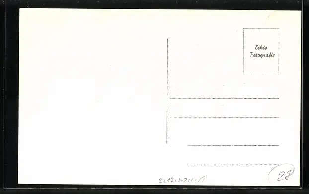 Personenbezogene Daten auf der Rückseite der Karte wurden durch blauen Textmarker unkenntlich gemacht. Die blauen Stellen sind auf die Vorderseite durchgeweicht und wirken sich negativ auf das Postkartenfoto aus