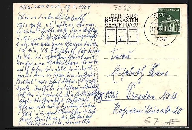 alte Ansichtskarte, gelaufen 1968, guter Zustand