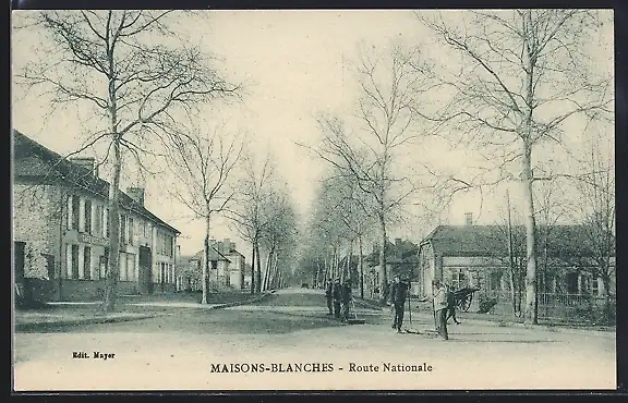 AK Maisons-Blanches, Route Nationale avec passants et bâtiments alignés