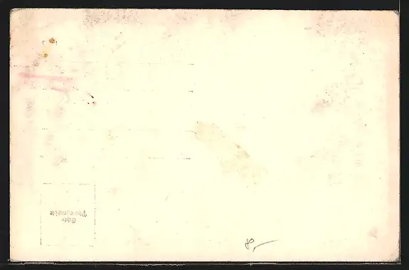 Personenbezogene Daten auf der Rückseite der Karte wurden durch blauen Textmarker unkenntlich gemacht. Die blauen Stellen sind auf die Vorderseite durchgeweicht und wirken sich negativ auf das Postkartenfoto aus