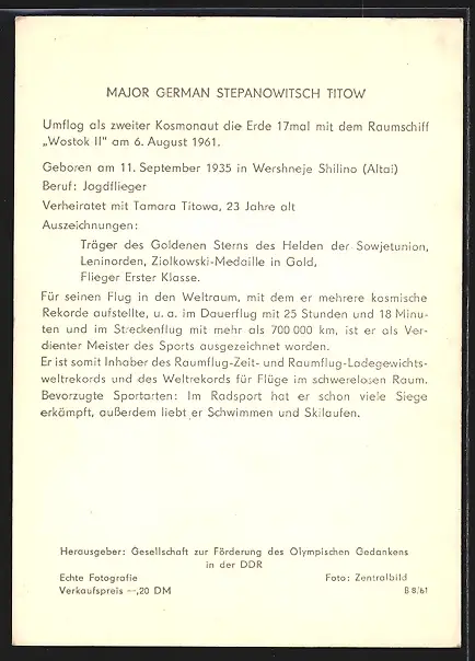 AK Major German Stepanowitsch Titow, Sowjetischer Kosmonaut