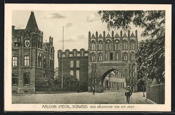 AK Malchin, Kalensche Tor mit Post