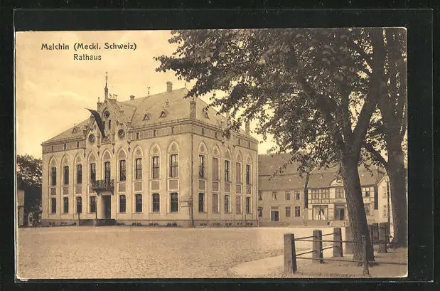 AK Malchin /Meckl. Schweiz, Rathaus mit Strassenpartie