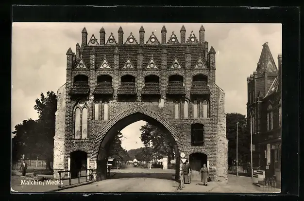 AK Malchin /Meckl., Strassenpartie an einem Torbogen