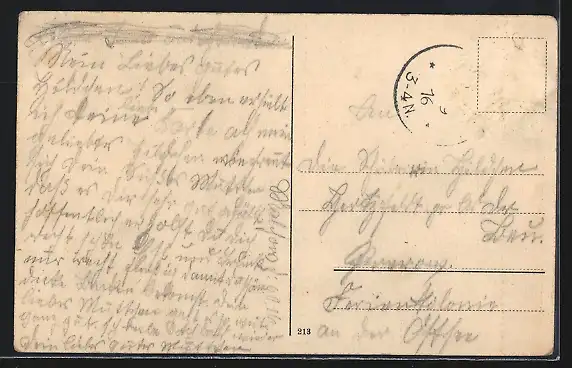 alte Ansichtskarte, gelaufen 1916, Briefmarke entfernt, rückseitig Oberflächenschaden, guter Zustand
