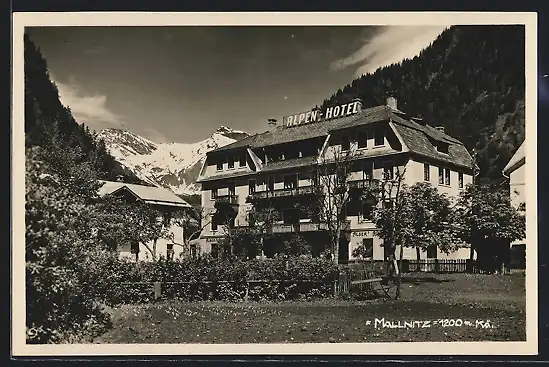 AK Mallnitz, Alpen-Hotel mit Bergen