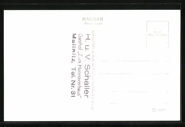 Personenbezogene Daten auf der Rückseite der Karte wurden durch blauen Textmarker unkenntlich gemacht. Die blauen Stellen sind auf die Vorderseite durchgeweicht und wirken sich negativ auf das Postkartenfoto aus