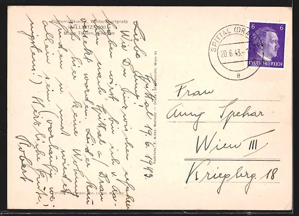 gelaufen 1943, Eckknick li. unten, guter Zustand