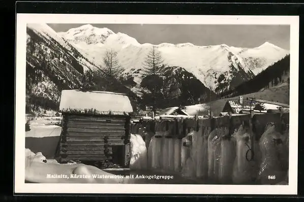 AK Mallnitz, Uferpartie mit Ankogelgruppe im Winter