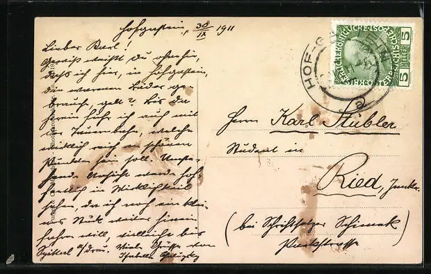 alte Ansichtskarte, gelaufen 1911, Oberflächenschaden, guter Zustand