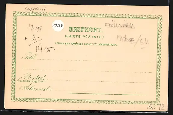 Personenbezogene Daten auf der Rückseite der Karte wurden durch blauen Textmarker unkenntlich gemacht. Die blauen Stellen sind auf die Vorderseite durchgeweicht und wirken sich negativ auf das Postkartenfoto aus