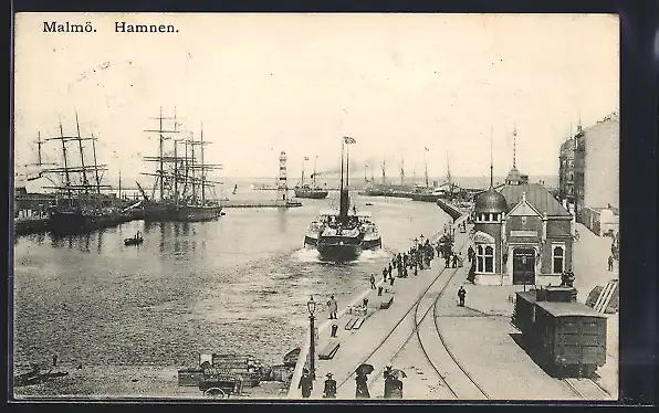AK Malmö, Hamnen, Hafenpartie, Dampfer, Segelschiffe