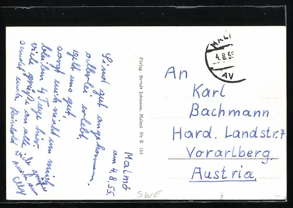 gelaufen 1955, Briefmarke entfernt, guter Zustand