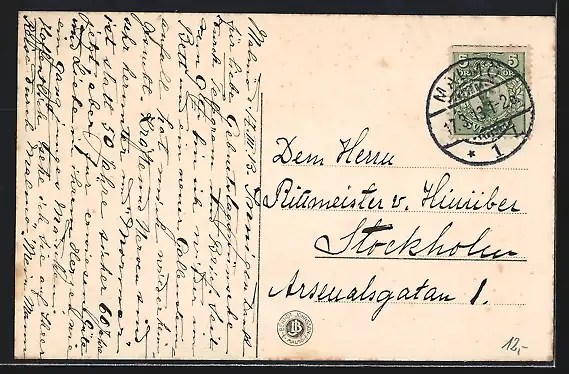 alte Ansichtskarte, gelaufen 1913, Stempelspur, guter Zustand