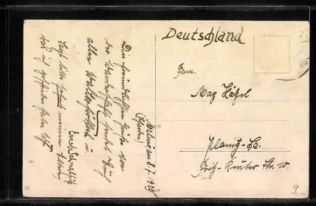 alte Ansichtskarte, gelaufen, Briefmarke entfernt, Einriss unten li., guter Zustand