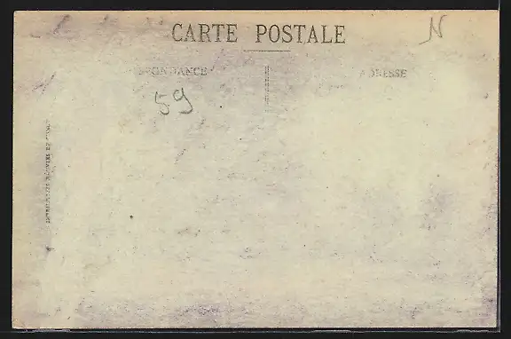 Personenbezogene Daten auf der Rückseite der Karte wurden durch blauen Textmarker unkenntlich gemacht. Die blauen Stellen sind auf die Vorderseite durchgeweicht und wirken sich negativ auf das Postkartenfoto aus