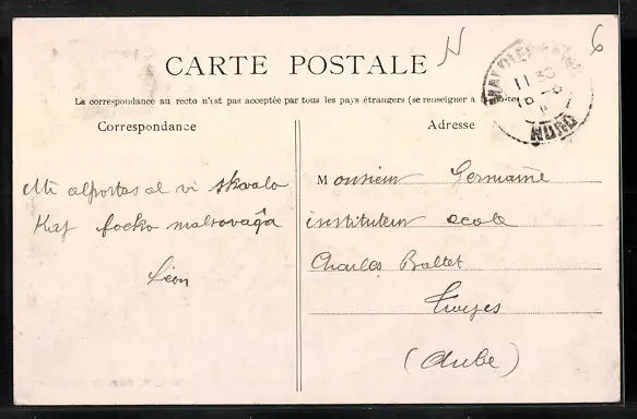 Personenbezogene Daten auf der Rückseite der Karte wurden durch blauen Textmarker unkenntlich gemacht. Die blauen Stellen sind auf die Vorderseite durchgeweicht und wirken sich negativ auf das Postkartenfoto aus