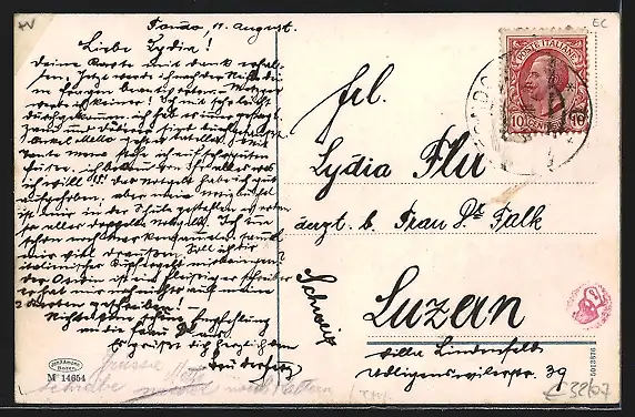 alte Ansichtskarte, gelaufen, Eckknick re. oben, rückseitig Klebe- und Papierreste, guter Zustand
