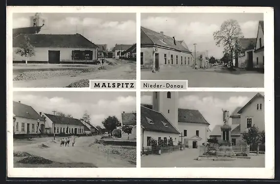 AK Malspitz /Nieder-Donau, Denkmal und Kirche, Strassenpartie