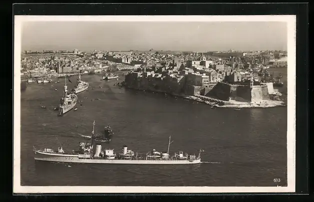 AK Malta, Hafen und Schiffe aus der Vogelschau