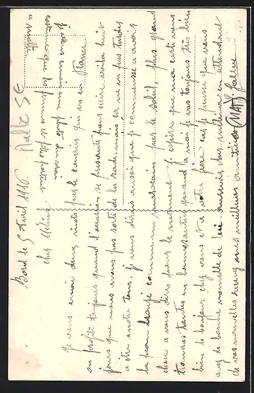 Personenbezogene Daten auf der Rückseite der Karte wurden durch blauen Textmarker unkenntlich gemacht. Die blauen Stellen sind auf die Vorderseite durchgeweicht und wirken sich negativ auf das Postkartenfoto aus