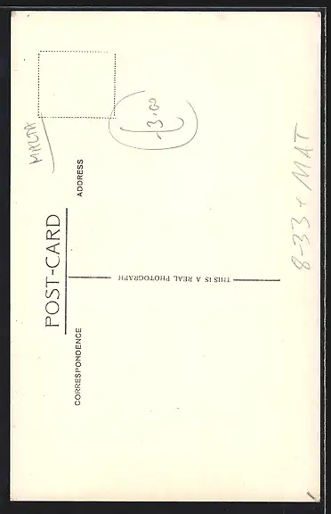 Personenbezogene Daten auf der Rückseite der Karte wurden durch blauen Textmarker unkenntlich gemacht. Die blauen Stellen sind auf die Vorderseite durchgeweicht und wirken sich negativ auf das Postkartenfoto aus