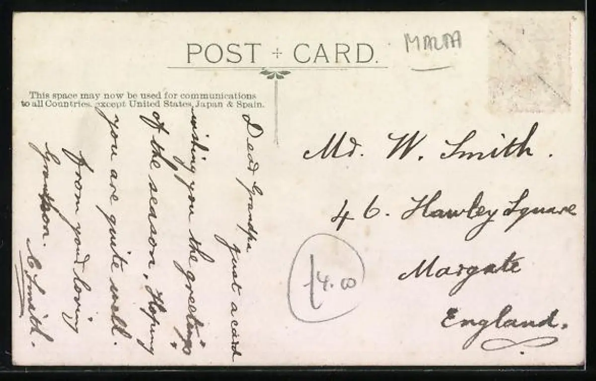 alte Ansichtskarte, ungelaufen, Briefmarke entfernt, guter Zustand