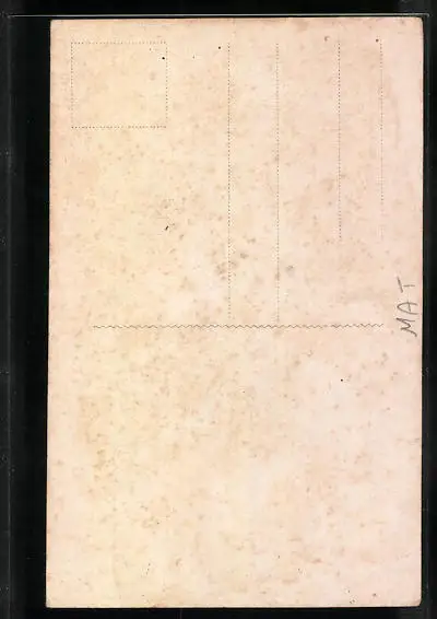 Personenbezogene Daten auf der Rückseite der Karte wurden durch blauen Textmarker unkenntlich gemacht. Die blauen Stellen sind auf die Vorderseite durchgeweicht und wirken sich negativ auf das Postkartenfoto aus