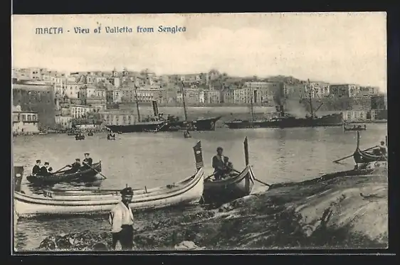 AK Malta, View of Valleta from Senglea, Schiffe, Ruderboote