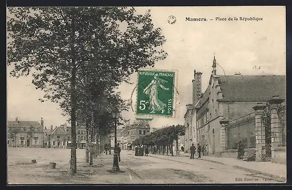 AK Mamers, Place de la République avec arbres alignés et bâtiments historiques