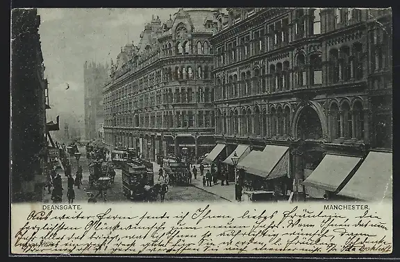 AK Manchester, Deansgate, Strassenbahn