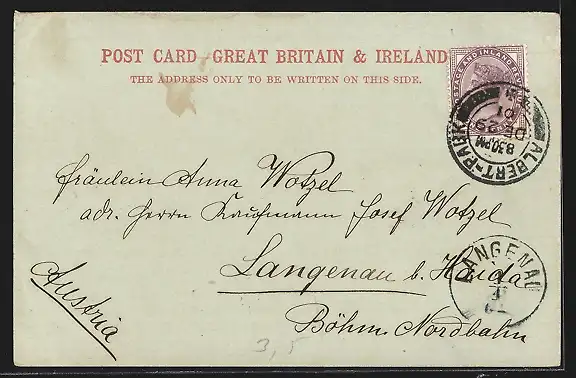 gelaufen 1901, Eckknicke oben, rückseitig Oberflächenschaden, guter Zustand