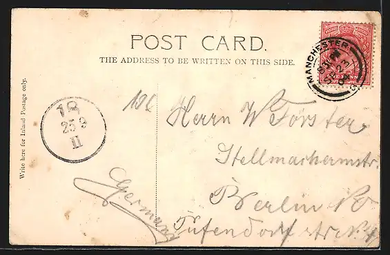 alte Ansichtskarte, gelaufen 1904, Einriss oben mittig, Eckknicke li., guter Zustand