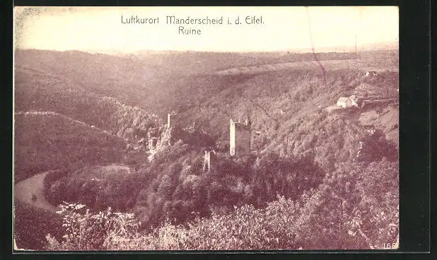 AK Manderscheid /Eifel, Ruine aus der Vogelschau