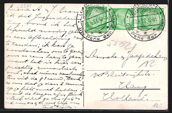 gelaufen 1933, Eckknick unten rechts, guter Zustand