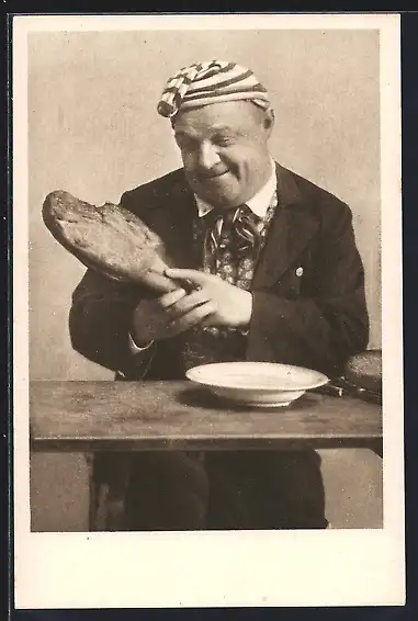 AK Mann am Tisch mit seinem Eisbein