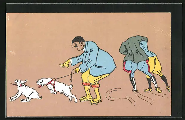AK Mann auf Rollschuhen mit Hund