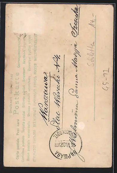 gelaufen 1902, Briefmarke entfernt, rückseitig Oberflächenschaden, guter Zustand