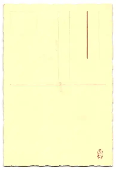 Personenbezogene Daten auf der Rückseite der Karte wurden durch blauen Textmarker unkenntlich gemacht. Die blauen Stellen sind auf die Vorderseite durchgeweicht und wirken sich negativ auf das Postkartenfoto aus