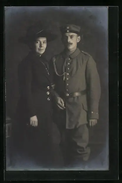 AK Mann in Uniform mit seiner Gattin, Uniformfoto