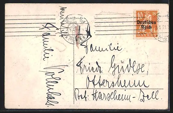alte Ansichtskarte, gelaufen 1921, Stempelspur, Eckknick re. unten, guter Zustand