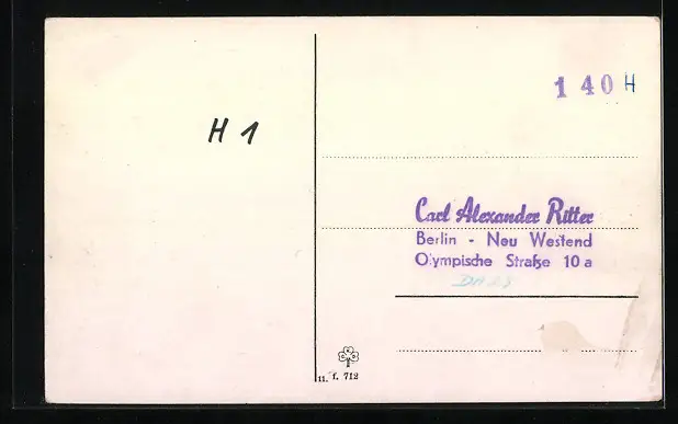 Personenbezogene Daten auf der Rückseite der Karte wurden durch blauen Textmarker unkenntlich gemacht. Die blauen Stellen sind auf die Vorderseite durchgeweicht und wirken sich negativ auf das Postkartenfoto aus