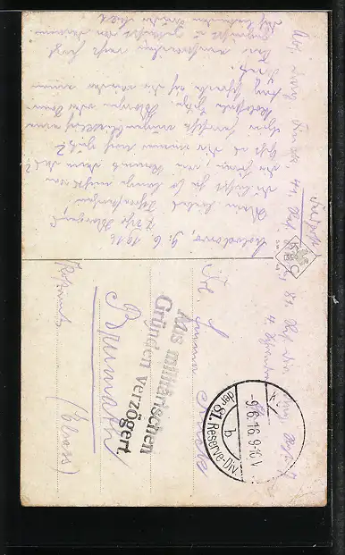 gelaufen 1916, Eckknick unten li., guter Zustand
