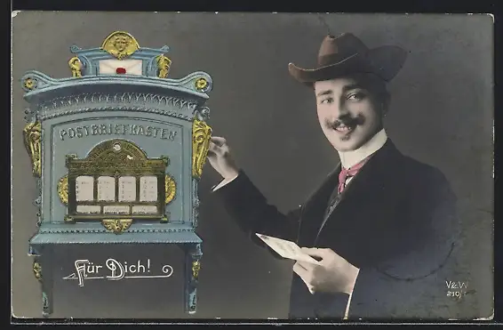 AK Mann steckt Brief in Postbriefkasten