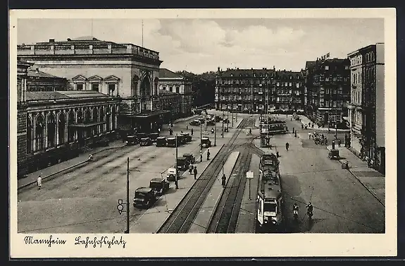 AK Mannheim, Bahnhofsplatz mit Strassenbahnen