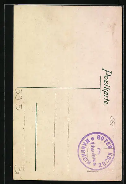 Personenbezogene Daten auf der Rückseite der Karte wurden durch blauen Textmarker unkenntlich gemacht. Die blauen Stellen sind auf die Vorderseite durchgeweicht und wirken sich negativ auf das Postkartenfoto aus