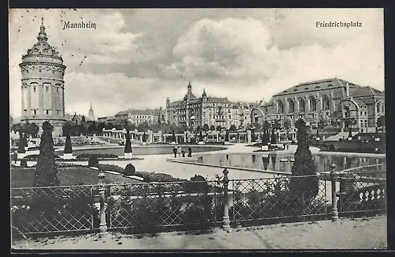 AK Mannheim, Gartenanlagen auf dem Friedrichsplatz