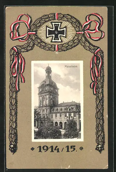 AK Mannheim, Gebäude der Innenstadt mit Turm