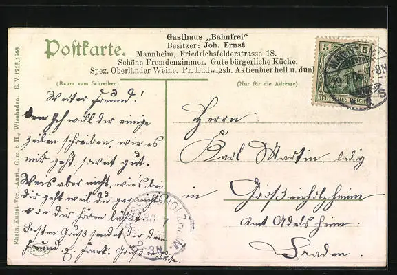 alte Ansichtskarte, gelaufen 1906, guter Zustand