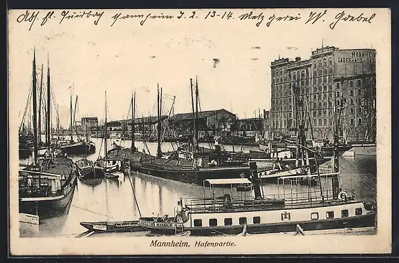 AK Mannheim, Hafenpartie mit Lagerhaus
